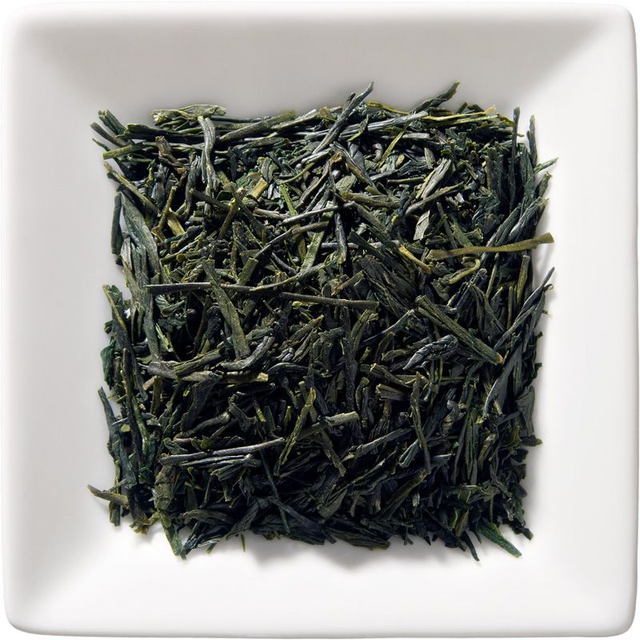 Zum Blattgut gehören unter anderem Blätter der Teestrauch-Varietäten Asatsuyu und Yabukita..