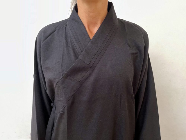 Die beiden Hüftbändel auf der rechten Seite der Robe verkörpern zwei Schwerter. Sie stehen sinnbildlich für das Zerschneiden und das Überwinden der drei Geistesgifte: Gier (Anhaftung), Hass (Ablehnung) und Verblendung (Ignoranz). Die drei Gegengifte sind: Grosszügigkeit, liebende Güte und Weisheit.